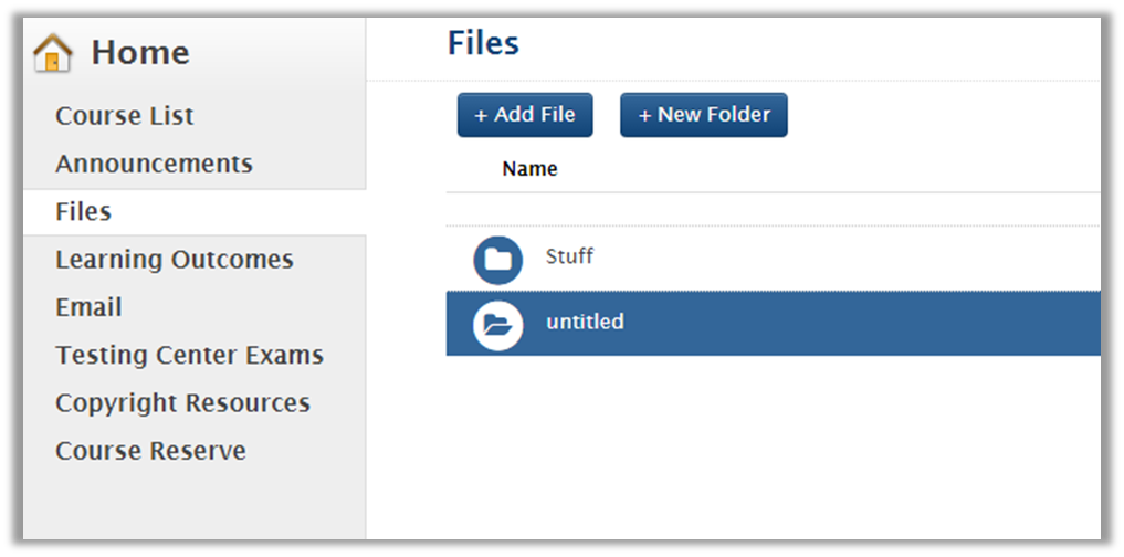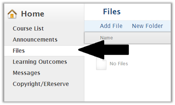 When an instructor wants to upload a File, they will select the Files option from their Home page on Learning Suite.