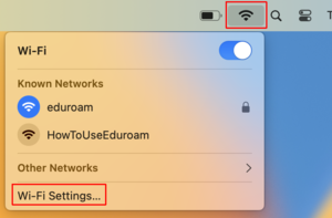 - Click the "Wi-Fi icon" at the top of the title bar and select "Wi-Fi settings".
