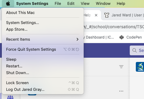 These steps only work for MacOS 13 and beyond. Instructions are similar for older versions, but the names of tabs are a little different.