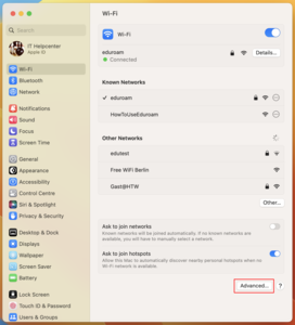 - Delete the com.apple.network.eapolclient.configuration.plist file which will prompt for local admin credentials. Then restart the laptop or iMac and connect to eduroam.