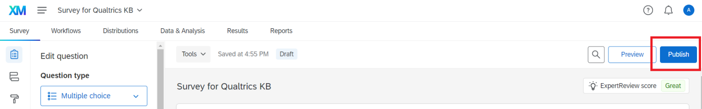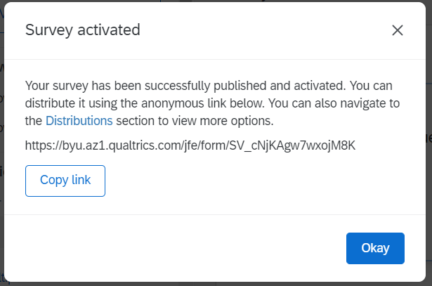 All surveys created in Qualtrics are inactive by default, so no one tries to take the survey while it is incomplete. Once the survey is complete, users can follow the steps below to deploy their survey.