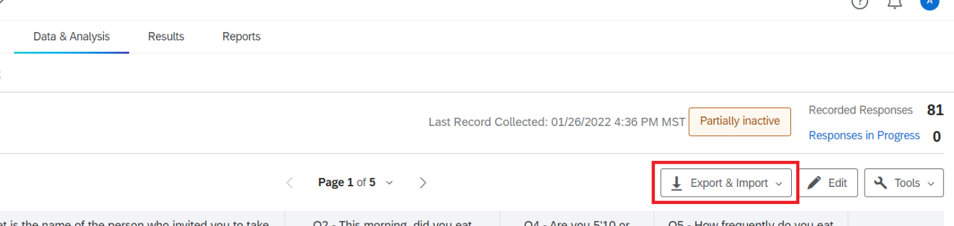 A Qualtrics survey can be exported as a .qsf or a .docx file. Additional options under this selection are to print or import.